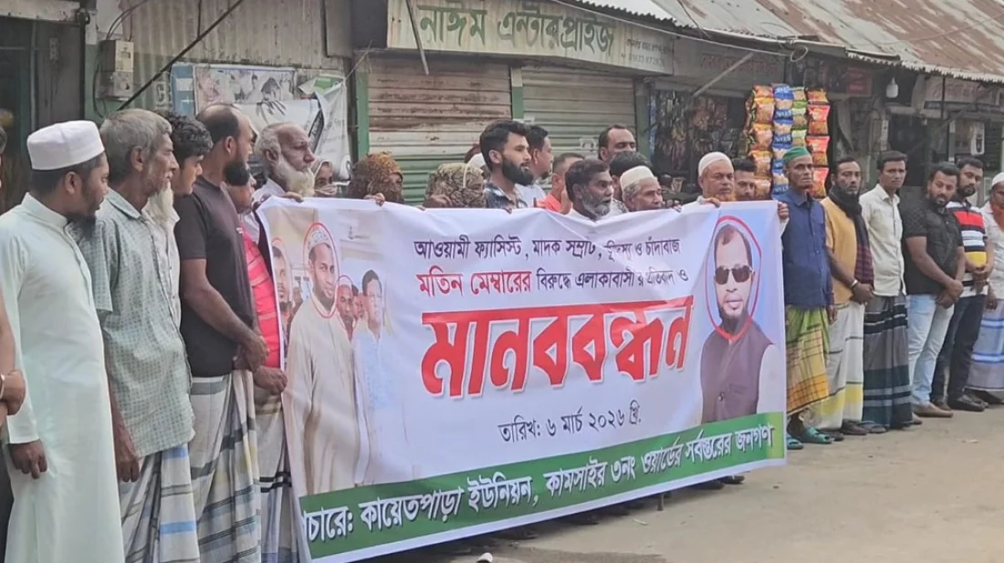 জাতীয় স্বার্থবিরোধী চুক্তি বাতিলের দাবিতে চাষাঢ়ায় মানববন্ধন