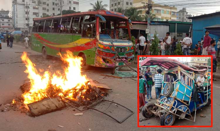 মৌমিতার চাপায় যাত্রী নিহত, বাসে আগুন সড়কে তুলকালাম