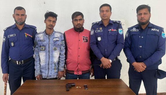 বন্দরে বিদেশী পিস্তল,ম্যাগাজিন ও ২ রাউন্ড গুলিসহ ২ অস্ত্রধারী গ্রেপ্তার